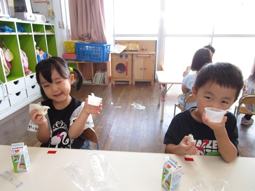 お昼寝から起きておやつと一緒にいただきまーす!